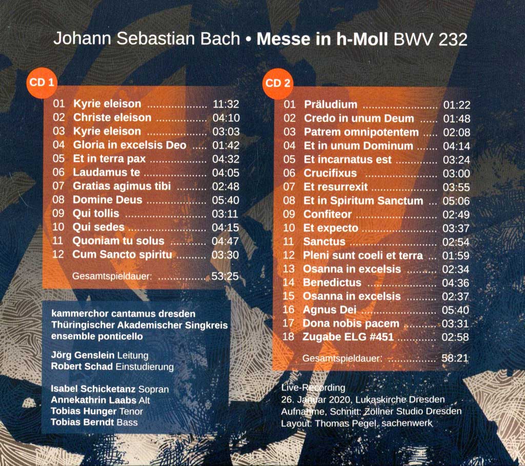 Alle CDs kosten 14 EUR, die h-Moll-Messe 20 EUR. Die Versandkosten betragen pauschal 3 EUR pro Bestellung. Die Allgemeinen Geschäftsbedingungen finden Sie hier.