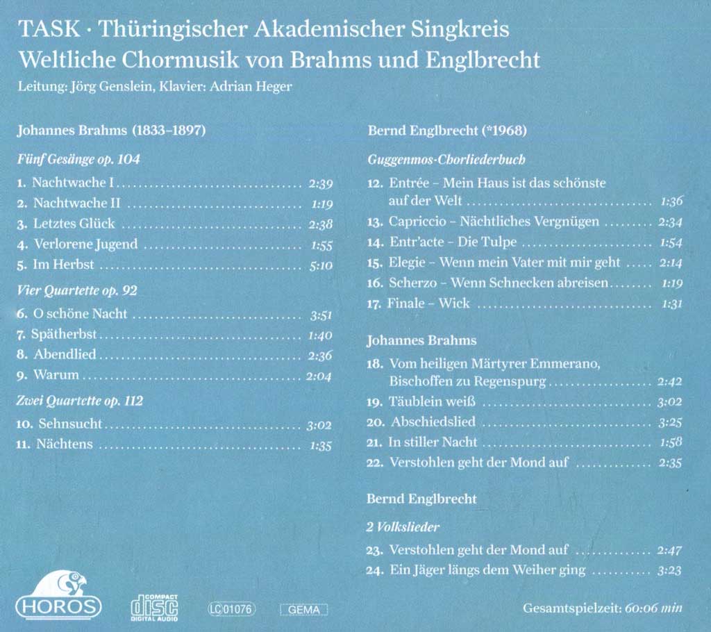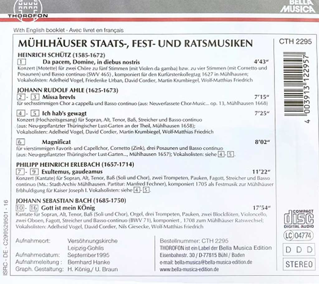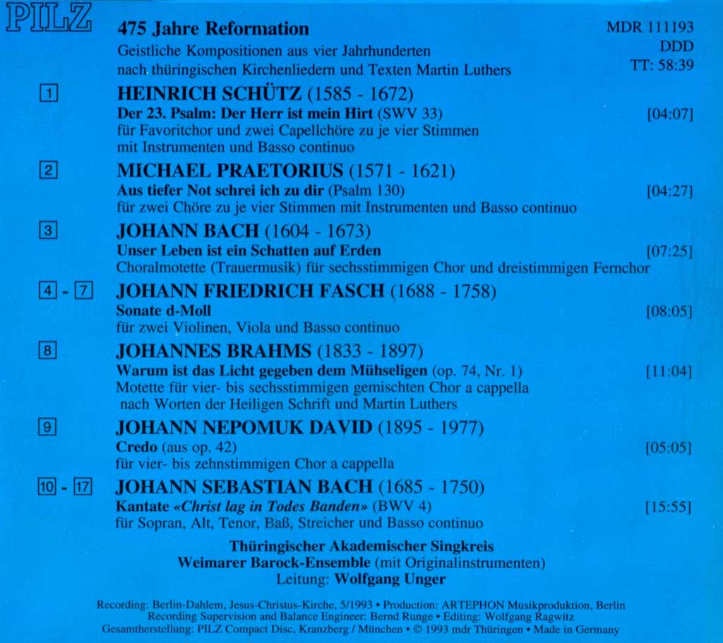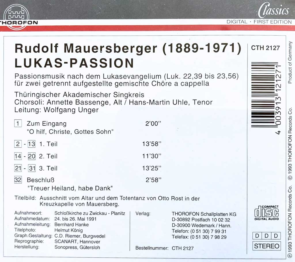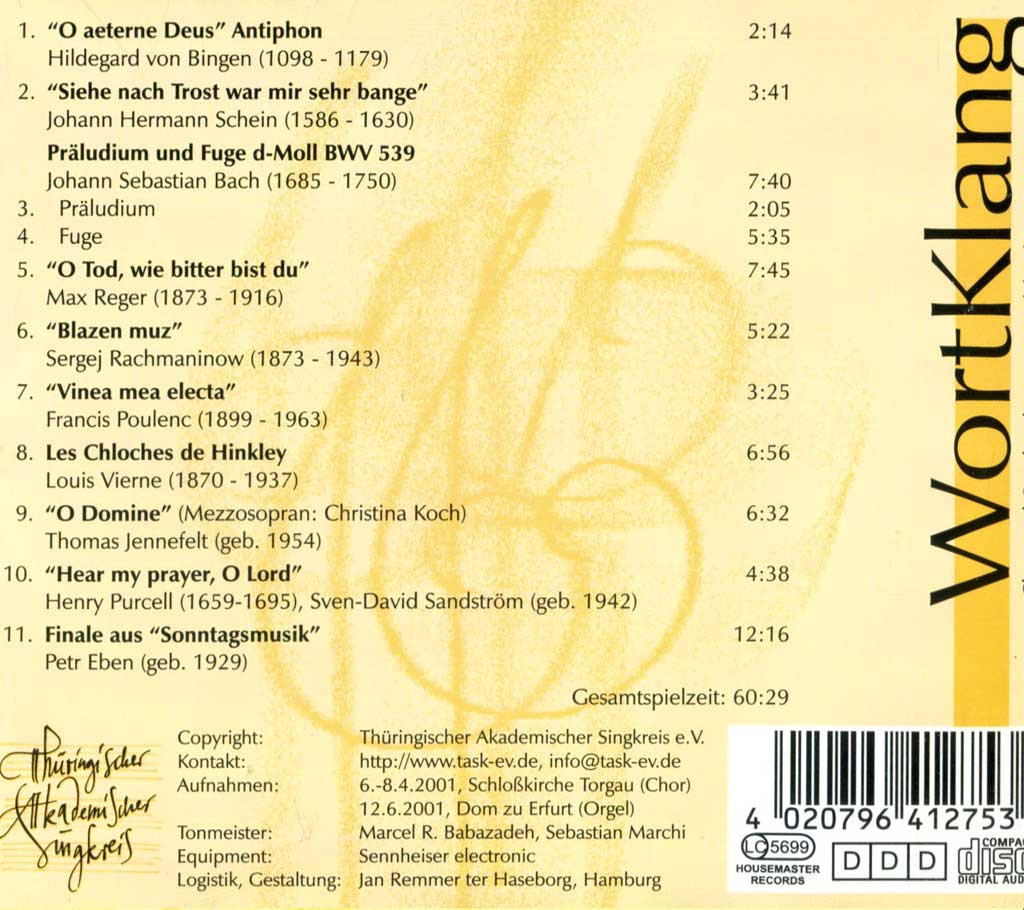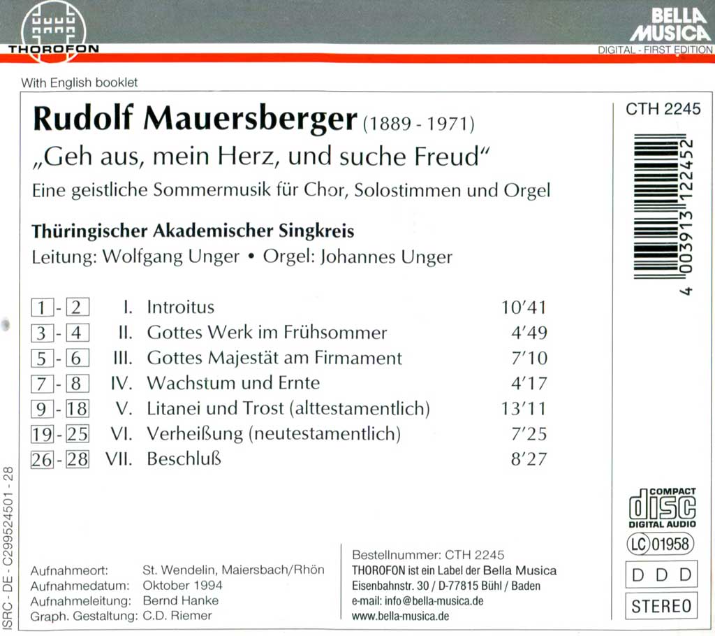 Lieferung, LiefervorbehaltDer Versand der Ware erfolgt im Regelfall innerhalb von zwei Wochen nach Eingang Ihrer Zahlung. Bei mangelnder Verfügbarkeit werden Sie vom Thüringischen Akademischen Singkreis unverzüglich unterrichtet, wobei eventuelle Zahlungen selbstverständlich zurückerstattet werden.